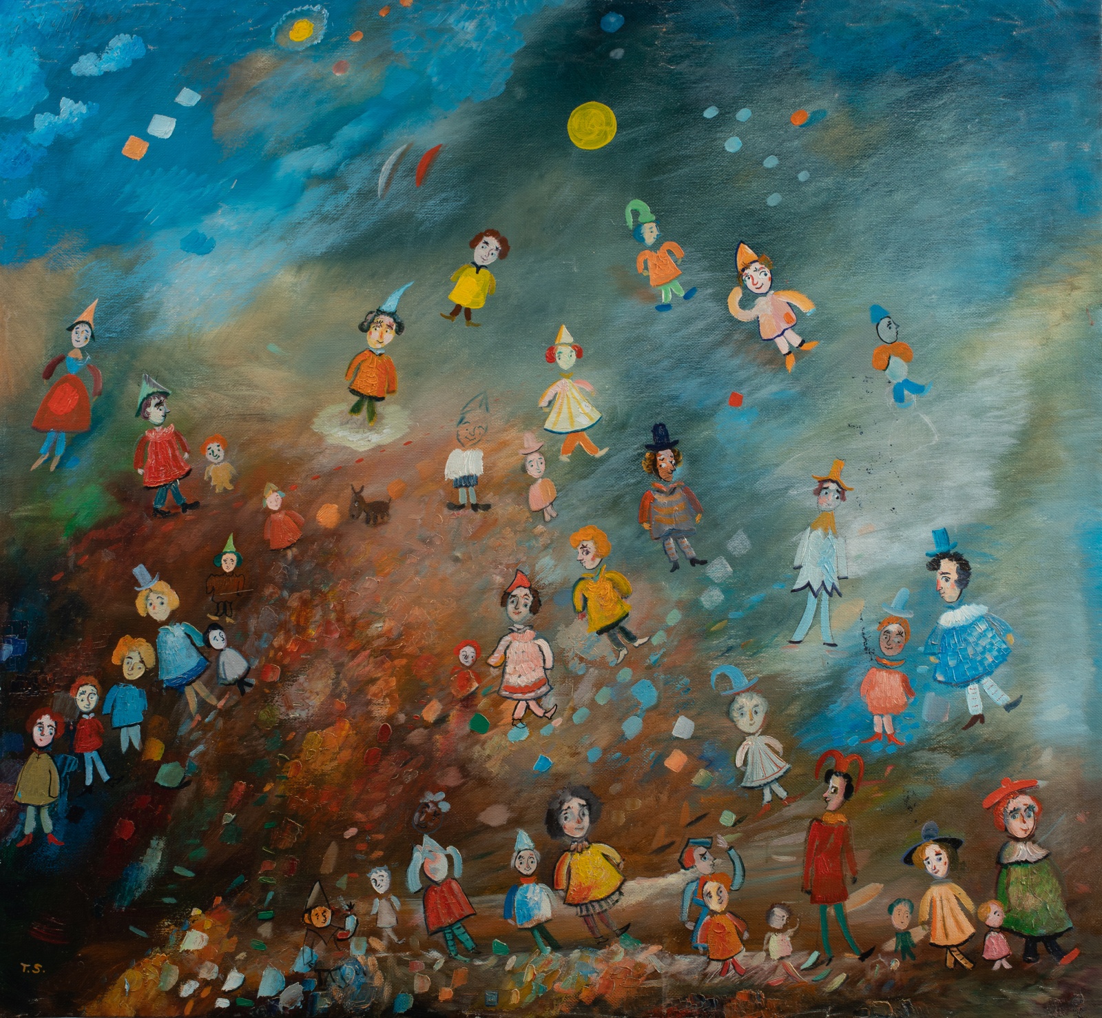 "The exhibition touched the viewer who felt my pain, love, and gentle humor. Viewers often told me that my characters seemed to know some kind of secret. But it is not really a secret, rather a kind of wisdom, an understanding that everything changes, everything passes, time goes on. This is why some of the characters hold clocks in their hands, and other characters are dolls that are no longer played with: the time has passed, the kid is all grown up. It is about understanding change, departing without clinging to what is already gone ... I wanted to create an image of a character that goes through change without losing humanity and without losing his dream."
